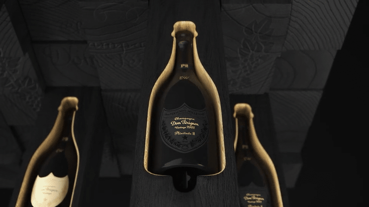 The custom-made champagne table was fully 3D modeled from scratch, with close attention to form and materials. The Dom Pérignon bottles were also modeled in detail, ensuring accurate shapes, labels, and finishes so the final animation feels true to the brand.